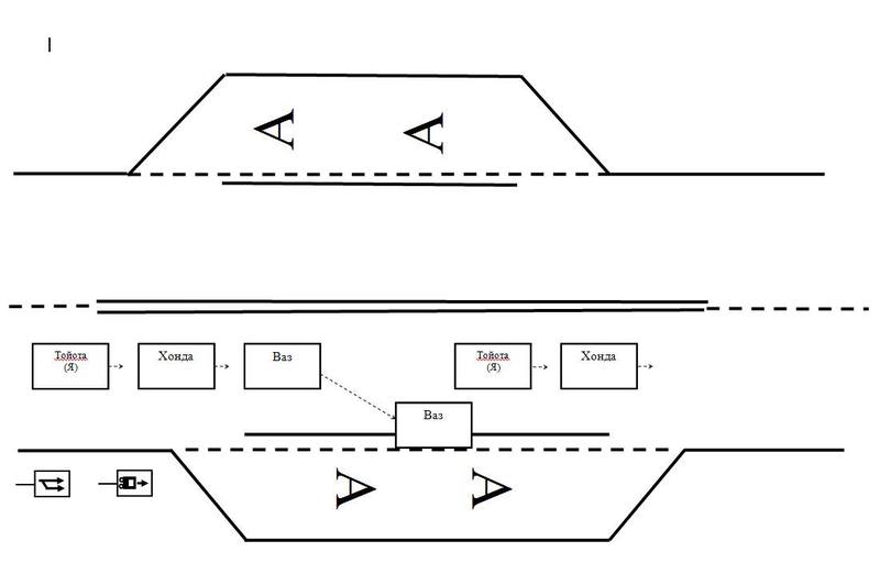 не знаю правил составления схем, на листе в клеточку рисовал ручкой...лист вроде официальный...на этой схеме я совершаю обгон с выездом на встречку....про хонду вобще ни слова и ни штриха