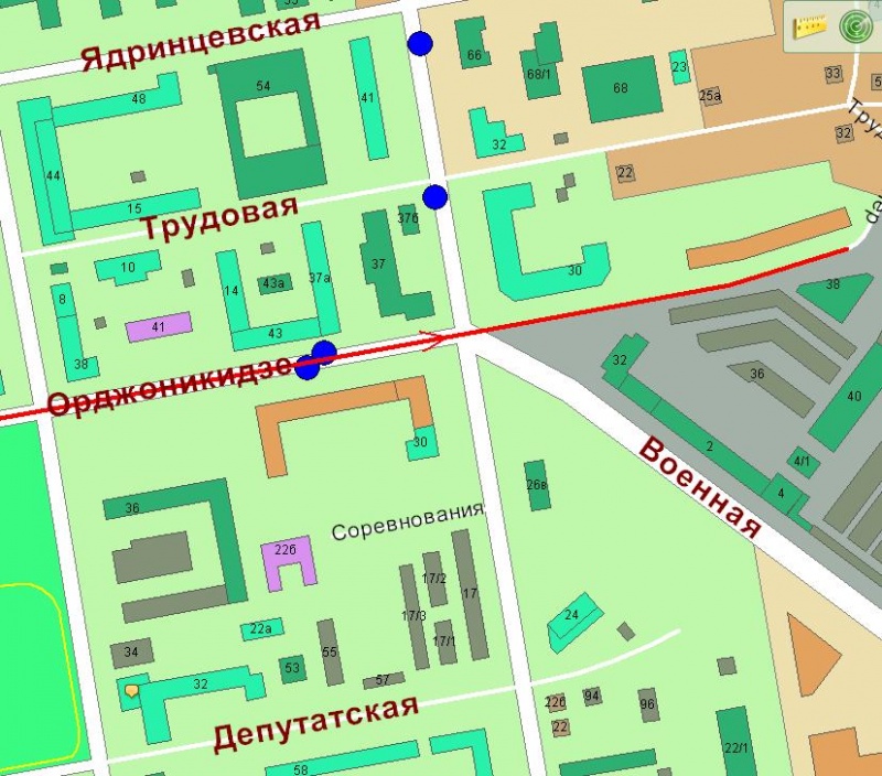 А вот ещё перекрёсток мне интересным показался: Орджоникидзе, С.Шамшиных, Военная.