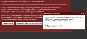 Касперский не руганулся, а файерфокс сказал, что этот сайт "атакует", то есть грубо говоря, "не стоит на него ходить, здесь может быть вирус"ДА я что, развеж я запрещаю Вам туда ходить? У меня кстати и файерфокс ругнулся и касперский