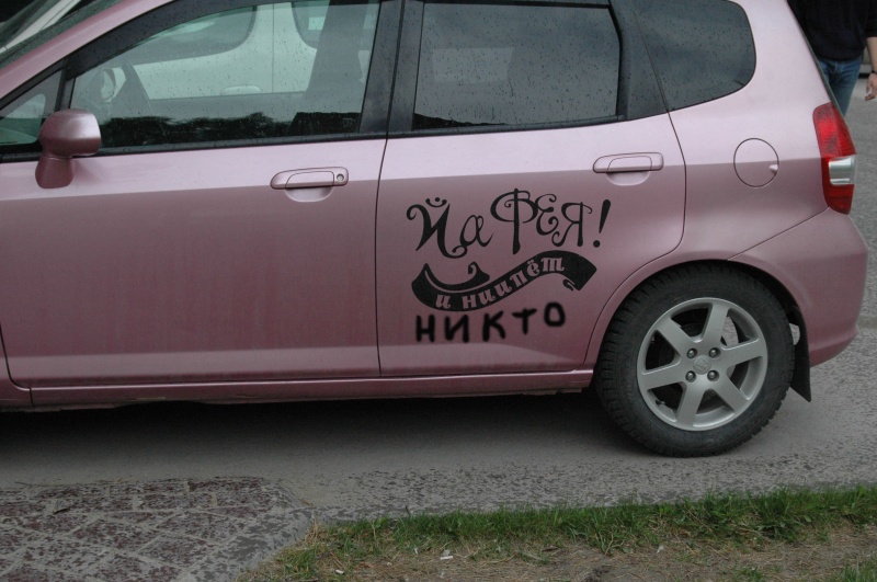 Баян. У неё еще сзади на все стекло "Йа фея и ниипёт"Так , может , девушка в прямом смысле ?.. Крик души : Мол - личная жизнь не сложилась , помогите , парни ?..