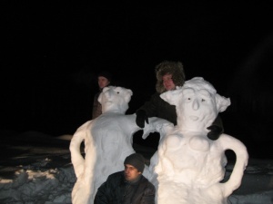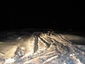 А площадка выглядит вот так. Справа - горка, на которой выяснилось, что субара не едет. Даже не горка, а насыпь земли под снегом, высотой метра полтора.