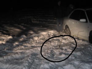 Закопалась Субара вот здесь.На ту горку где застряла субару можно и не лазать.