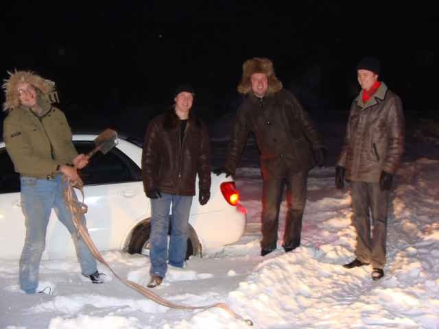 - Если у Вас есть штурман, который готов в случае застревания, выкопать ваше авто из сугроба.