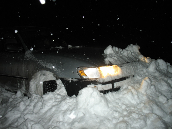 , потому что первый раз вылетел в сугроб, а второй раз свернул на нету колею. И это при свете дня