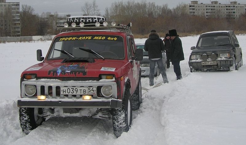 кстати слева и справа от колёс нивы видно первоначальный уровень снега