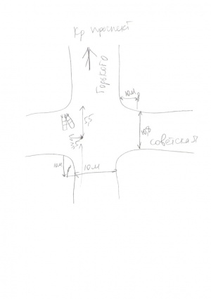 исходное: авто №1 проехало от линии стоп до места аварии 16,5м при скорости(как заявляется) 55-60 км/ч. в момент пересечения загорелся красный.