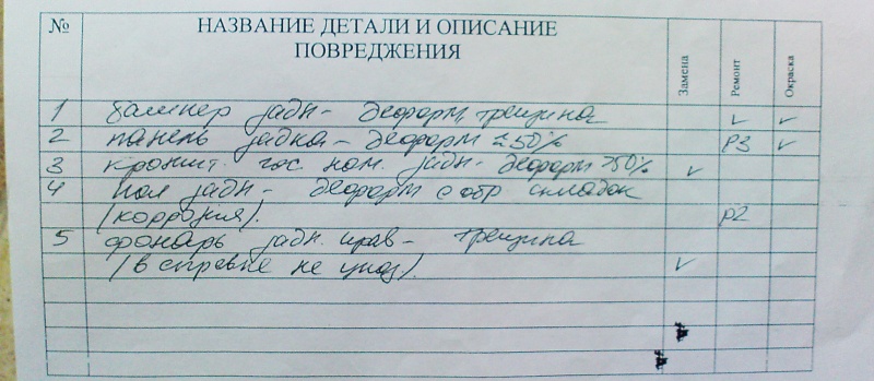 ...Насчитали исключительно ремонт, без замен, чему я уже был удивлен. Выгадывать что-то в планах не было, решил просто заехать на ближайшее СТО и спросить сколько будет стоить ремонт. Там сказали, что ремонт будет стоить на 20% дороже...Даже странно немного. Обычно ремонт выгоднее замены. Заменяемая деталь считается с износом, работы и материалы - без.