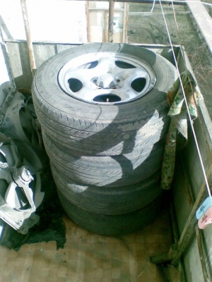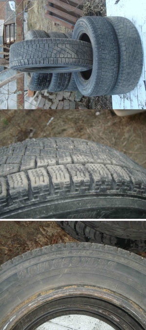 Bridgestone blizzak MZ01; R13*70*165 – всесезонка – 3 шт. состояние средне-нормальное, протектор живой, в одном колесе имеется ввернутый саморез, но колесо при этом не спускает. Сколько на них ездили не знаю, т.к. мне достались с машиной, сам я на них ездил в начале этой зимы, три недели, пока не купил новую шиповку на все четыре колеса, тормозят по льду хорошо. Цена за все три колеса 750 рубликов