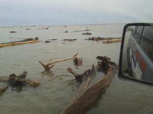 У меня есть следующая инфа от обитателей "Науки". Льда много. Открылись только небольшие участки пляжа. Вода ушла далеко. Т.е. ехать до острова не по песку а по льду. Лед должен лежать на дне, если вода ушла.