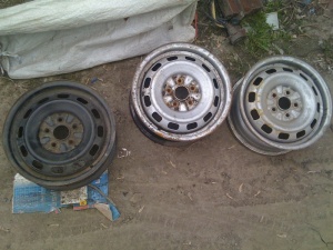 штамповки есть 3 штуки )) 2 серебристых 1 черненькая. От тойоты. на 14" 5*114,3 или 5*114 рублеей по 250 за штуку