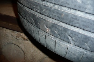 без проколов, эксплуатировалась полсезона, все шипы на месте. Протектора не менее 10мм.