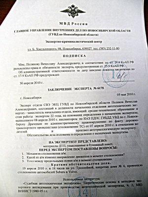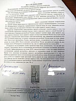 перед машины по замерам стоял с отклонением в 10-15 см вправо, а экспертиза выносит решение, что на 15-20 градусов влево.