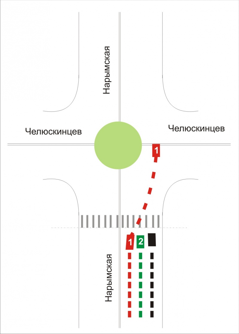 Уважаемые автолюители, во вложении схема (нарисована не профессионально, но суть должна быть ясна). Дело было перед кольцом на цирке со стороны пл. Кондратюка. За несколько метров до светофора (до зебры на схеме), авто под №1 (красное) начинает резко уходить вправо, шоркая по левому крылу колесом авто №2, на крыле №2 над колесом остался характерный шлейф (с направлением рисунка от этого шлейфа вперед по ходу движения) и немного поцарапан бампер колесом автомобиля №1. После соприкосновения №2 резко тормозит, а №1 пролетает вперед и останавливается на середине кольца.
