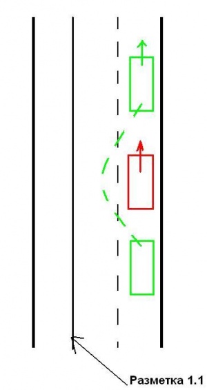 второй вопрос - как вернуться на свою полосу. если начнется разметка 1.5 - то совершенно спокойно. Если будет 1.1 - то есть шанс заплатить за данный маневр 100 рублей по п. 12.16 КоАП