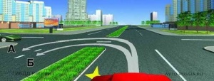 По траектории А или Б?? К примеру, перекресток Красный пр. - Кропоткина. Еду со стороны пл. Ленина по Красному пр., нужно развернуться на данном перекрестке...
