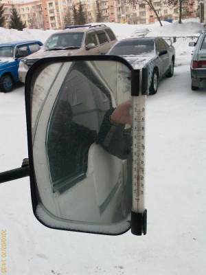В зеркало вставь и всё будет пучком.На пежо у меня стоял в правом зеркале. Начинает врать в пробках, особенно когда встанешь рядом с камазом, под выхлопной ) а так плюс минус 2 градуса в норме показывал.