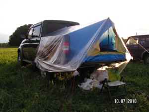 А зачем ставить палатку в багажнике когда рядом отличное поле