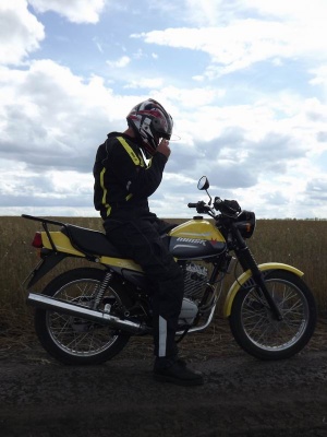 Вообще смешно было один раз, качусь себе неспешно, весь такой в обмундировании, и обгоняют меня из соседней деревни пацаны на ИЖе, в футболках, шортах и сланцах... Стыдно, е-мае.