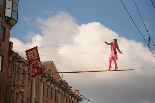 Управление Федеральной антимонопольной службы по Челябинской области признало ползущую за шоколадом по канату девушку угрозой для безопасности водителей на дороге. Все дело в том, что не так давно в городе появилась наружная реклама, расположенная над дорогой: очень реалистично изображенная художниками девушка над проезжей частью по натянутому канату ползет к укрепленной на противоположной его стороне плитке шоколада. Изготовителям этой рекламы удалось добиться эффекта максимальной реальности «происходящего», и у водителей, проезжающих по дороге, с первого взгляда создавалось впечатление на самом деле висящего над трассой живого человека.
