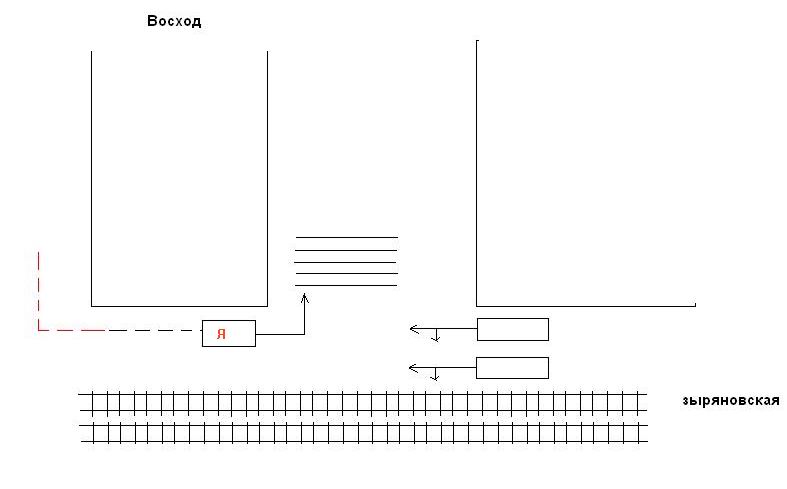 Мне кажется, что как-то надо приплести тот факт, что зыряновская с другой стороны (вправо, если ехать на мост) не имеет за трамвайными путями проезжей части. Да и вообще она там какая-то недоулица. И те кто едет по зыряновкой оттуда тоже вроде оказываются на встречной, если поворачивать на Восход. Может чего напутал, но перекресток там реально дурной. Поэтому я там не езжу