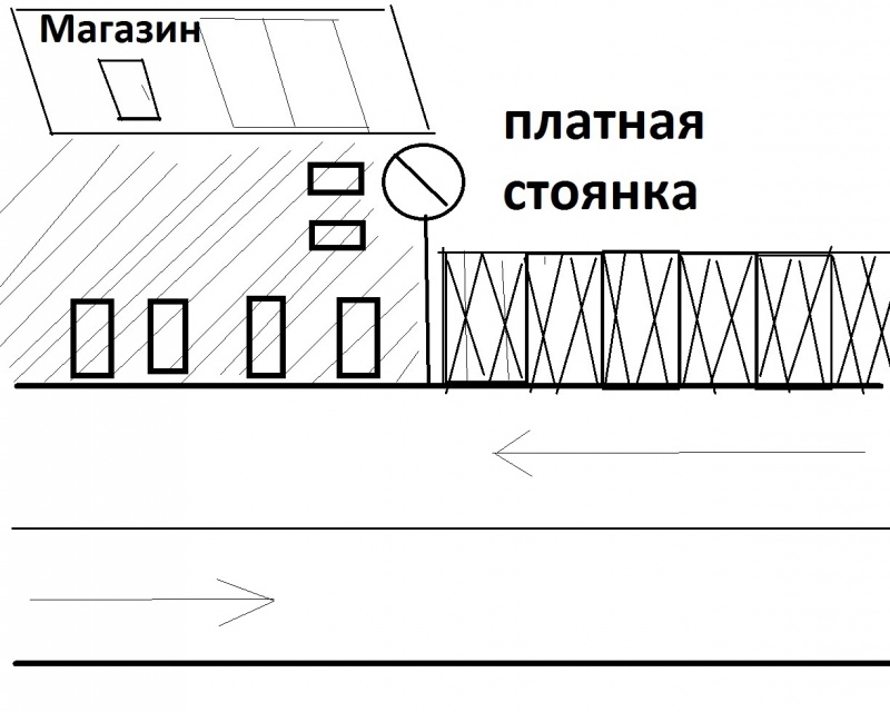 Понятно дело что хозяин магазина башляет кому надо, за такую вот "службу", машины мешают работе магазина, хочется понять есть ли у гайцев законные основания гнать всех с площадки около магазина. Нарисовал схематически, как сумел, простите за художество.
