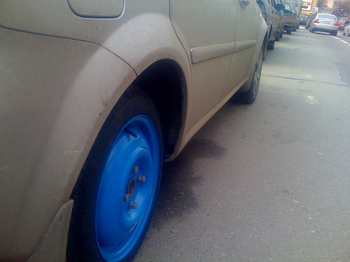Колесо маленькое , вернее узкое. Попадается в иномарках зарубежного производства, призвано экономить место в багажнике.вчера по немировича ехал вечером в сторону моста в районе шатуна шаха на такой ехала)))...при чем стояла на заднем левом...
