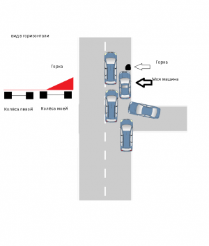 Только проезжаю боковой выезд с заправки вижу впереди горку под правое колесо см 30.