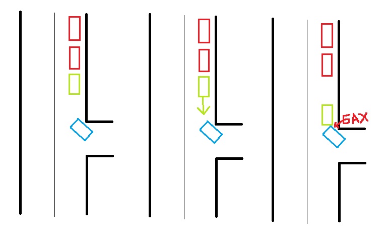 А с боковой высунулся одновременно с моим откатом.
