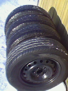 2. 4 штамповки на 14 4*114.3 с резиной липучкой йокогама 175 65 вроде. 2 резинки почти лысых а еще две на сезон хватит.протектор где-то 4мм