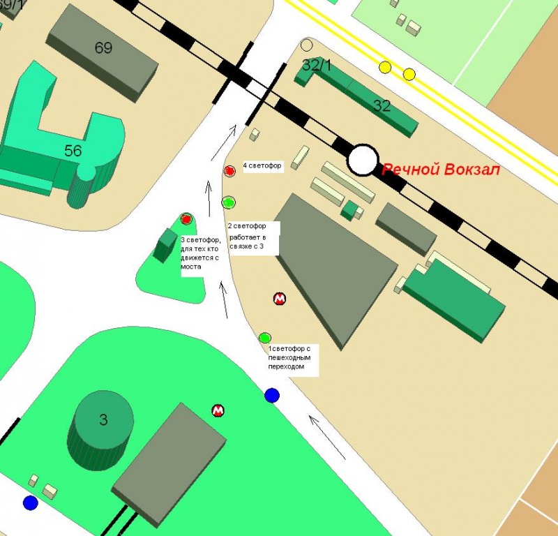 Для простоты сделал схемку. Просто только что проезжал, и не понял смысла 4 светофора. Ситуация следующая 2 светофор горит зеленым, 3 красным, и 4 красный. 4 светофор кому и зачем запрещает движение? пешеходных переходов в этом месте нет, с моста все остановились еще на 3 светофоре. Зачем 4?