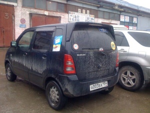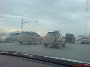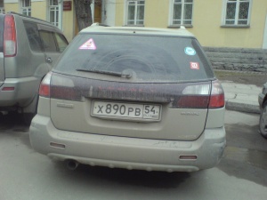 Видела сегодня странную машину. Белый седан с черно-белой наклейкой тихо прокрался с Ядринцовской на Красный (на лево) не свой свет.