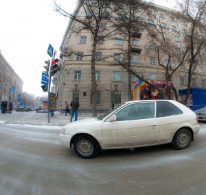 калдина с синей наклейкой на перекрестке дуси и нарымской утречком