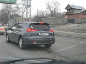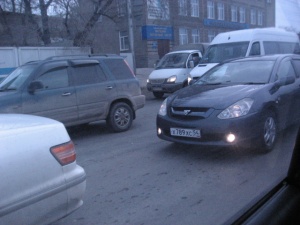 около полудня сЁдня на колечке у автовокзала стремительно втиснулся перед япономаркой "защитного" цвета, подумал что расстроил чем и потому на меня так дудят - а там смарю, барышня рукой машет, вроде бы приветственно и пассажир неприличных жестов не кажет