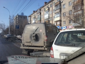 А еще в обед видела на Народной джипа, кто это не поняла, даже номер не запомнила, но обсигналила