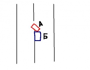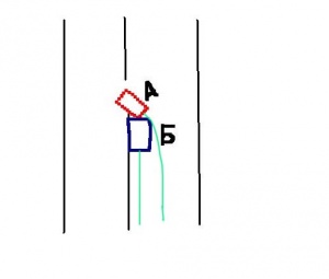 либо стоящий стоял под углом к осевой линии.Это 100%. Только, как это доказывает его вину???