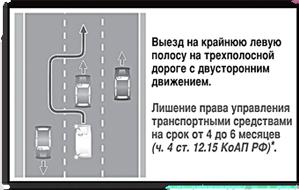 Нарушение водителями требований дорожных знаков или разметки, которое повлекло выезд на сторону проезжей части дороги, предназначенную для встречного движения, также следует квалифицировать по части 3 или части 4 статьи 12.15 КоАП РФ,