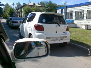 Случайно увидел белую, кажется тойоту, в зеркало заднего вида, разворачивающуюся
