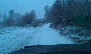 Кстати, удаление от города было плавным, километрах в 2-3 от черты снежка было совсем мало.