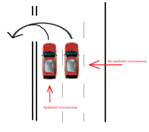 судя по всему, там разделительный газон был и стояли они паралельно, она правее, поэтому верно сделала.