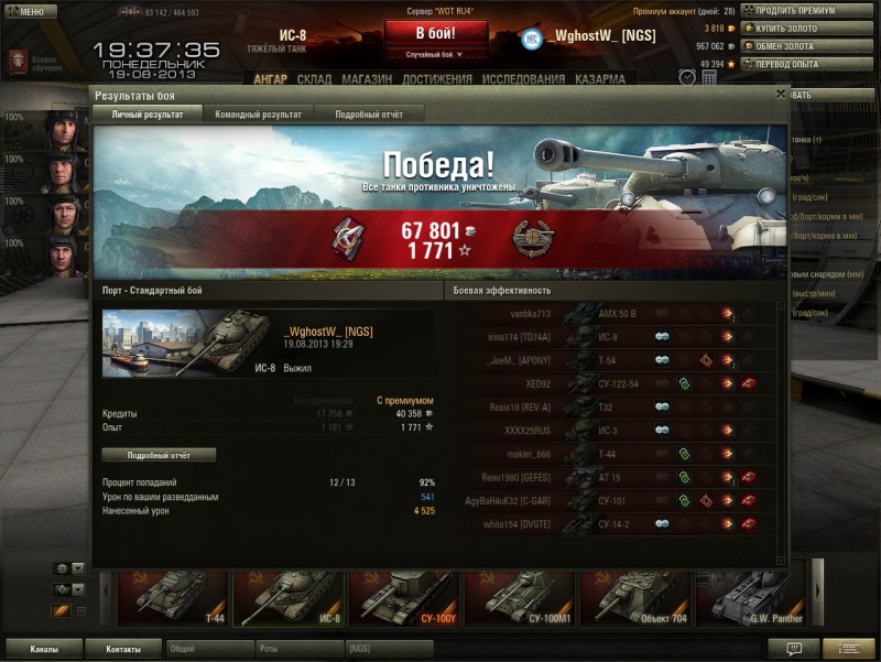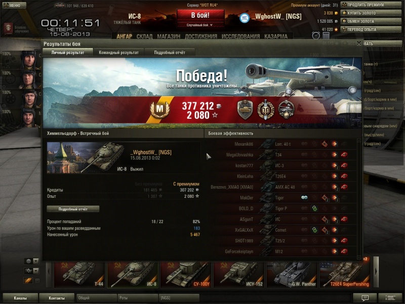 Я сейчас в основном на ИС-8 катаю, попадает именно по серверному, т.е. я почти не свожусь сейчас на нём, он почти всегда сведён, даже в движении!