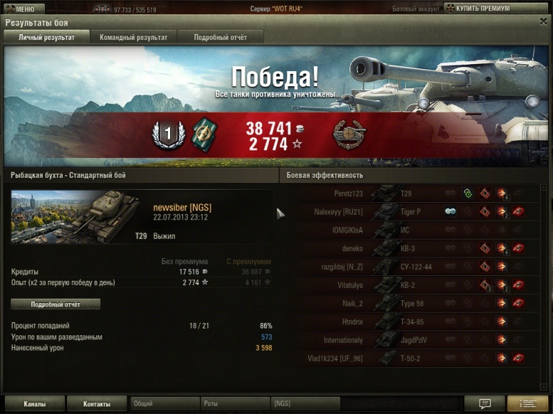 Достижения в бою: «Поддержка», «Снайпер»