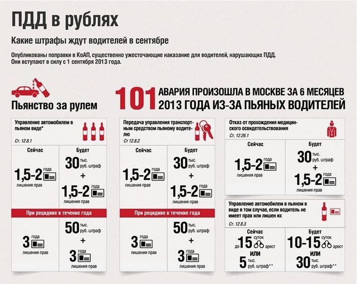 Ни намека на послабления: превышение до 20 км/ч теперь ненаказуемо; маневр без сигнала поворота - не просто 500 (как в картинках), а "предупреждение или 500" ну и тд. Чувствуется "журналистско-пропагандистский" подход