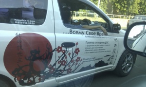 респекты креативностиЭт, скорее, демонстрация возможностей - там на машине видно, что владелица имеет какое-то отношение к изготовлению наклеек на авто.