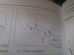 У моей есть специальные места под домкрат впереди и сзади... а коли есть, значит за них и надо поднимать.