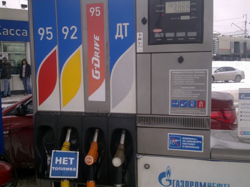 Потом на кассе висит объявление типа "в связи с прекращением поставок ГПН, бензин только для служб города"