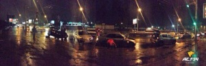 Вчера вечером более 20 автомобилей пробили колеса на улице Нарымской в районе площади Трубникова под путепроводом.