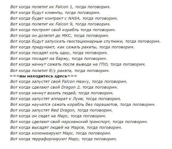 Дело в другом, граждане доказывавшие, что Маск с Теслой и СпайсИкс фуфел, доказывали что 2Х2=5. Доказывать им что-то в ответ было...