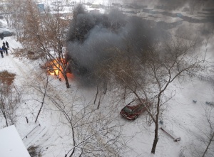 в 10-30 загорелась машина припаркованная во дворе дома по улице Федосеева. Хозяин был рядом, немного обгорел. Довольно оперативно прибыла пожарная и скорая. Фото прилагаю.