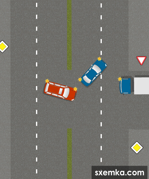 Будь я синим грузовиком да нафиг мне это, есть у меня и не грузовик, давай стукнемся? Рискнешь встать под удар? Пусть определят виновного