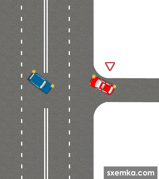 Ок, и кто кого должен пропустить? Почему водитель красной должен догадаться, что он просто поварачивает, а не разворачивается?